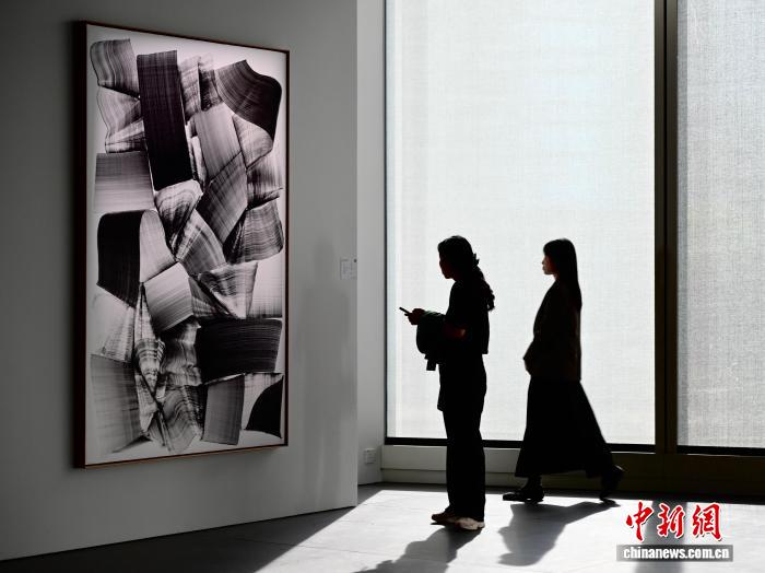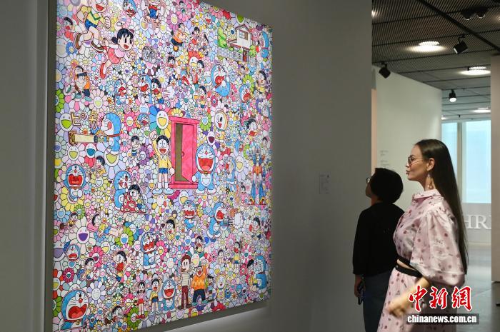 图为二实密斯旁观村上隆的艺术大作。记者 李志华 摄
